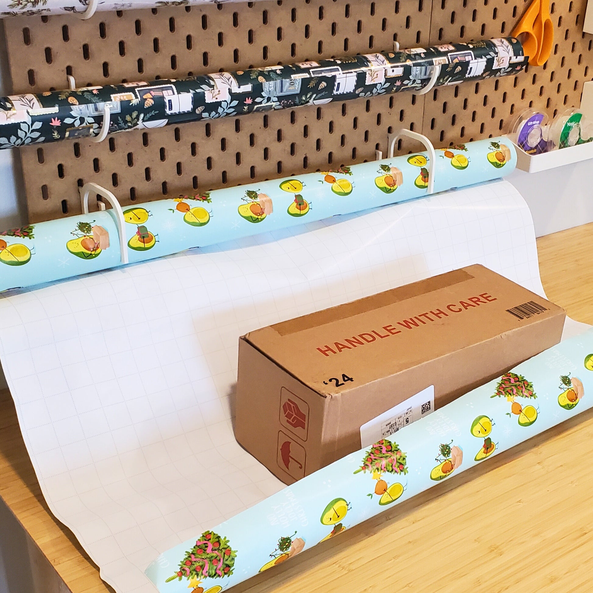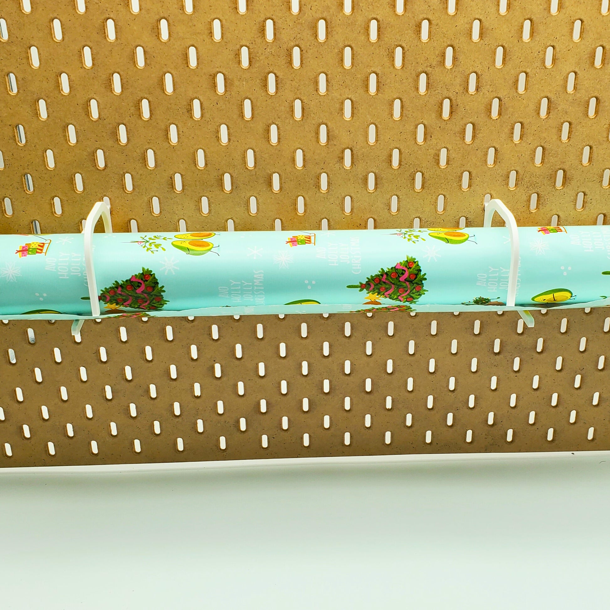 Dispense your wrapping paper right off your pegboard! Utilize your pegboard and wall space by lifting your paper rolls off your desk. Introduce a more clean and elegant zen to your crafting area! Whether you are wrapping the night before Christmas, or a year round small business shipper, rolls of paper are used everywhere, and you deserve an organized area to be proud of!