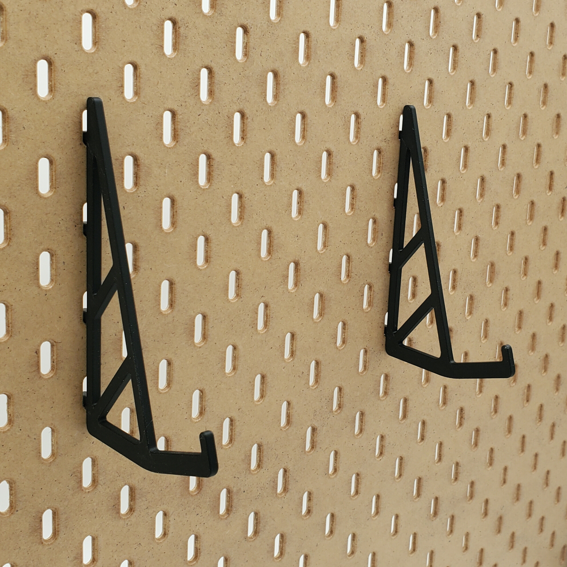 Another Just Hanging electronic accessory! A Computer Storage hook for your IKEA Skadis Pegboard. Sold in sets of two, each pair of hooks are tough enough to support even the heaviest of laptops, while looking stylish in a color of your choosing! From a stately black to a pop of pink, your sure to find a solution to your computer storage needs that matches your office aesthetic!