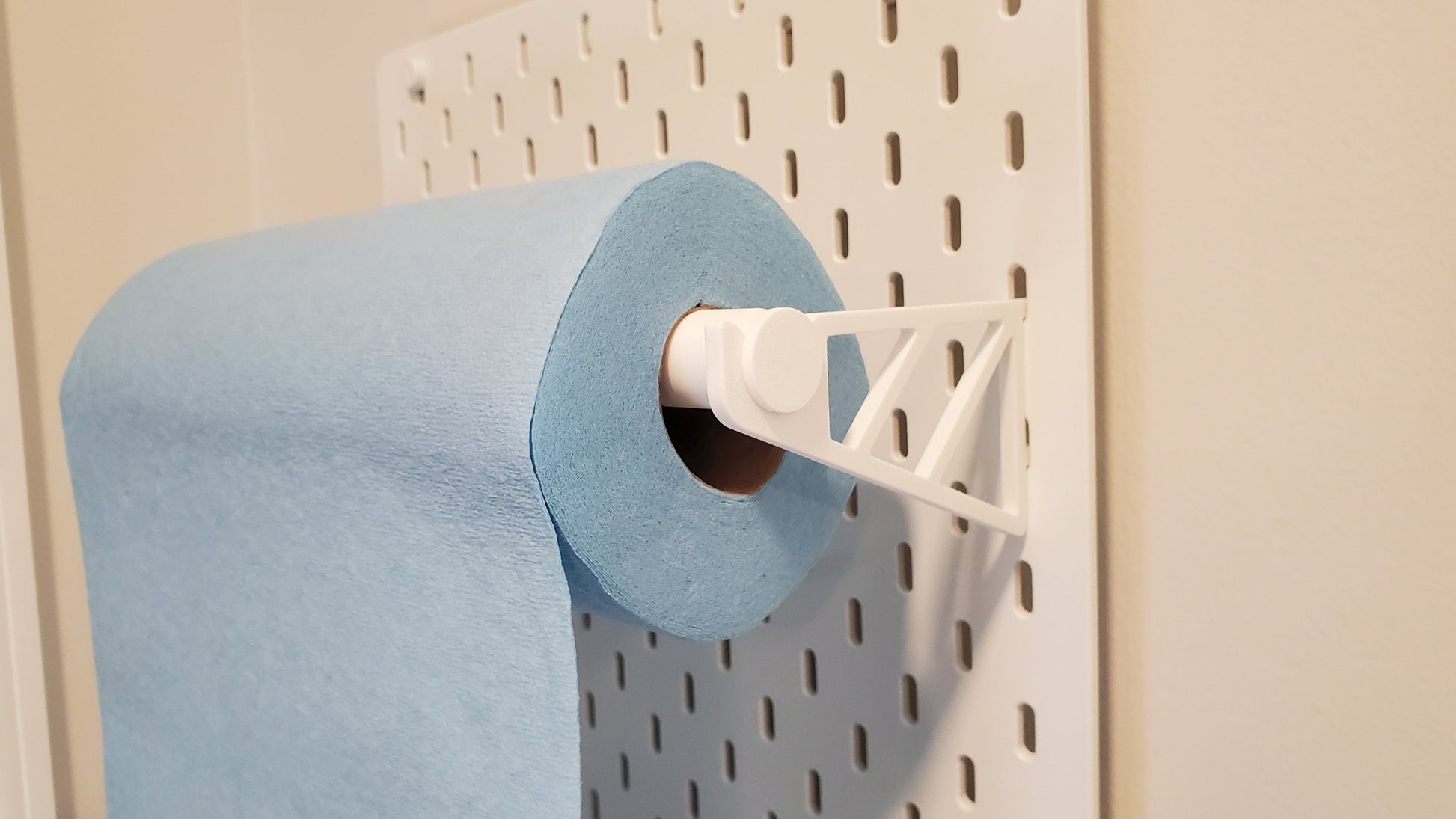 Keep yourself organized with a paper towel holder holder that mounts directly to your SKADIS board while capable of handling a 7in diameter roll. Simple lift-off design makes roll change out a breeze!