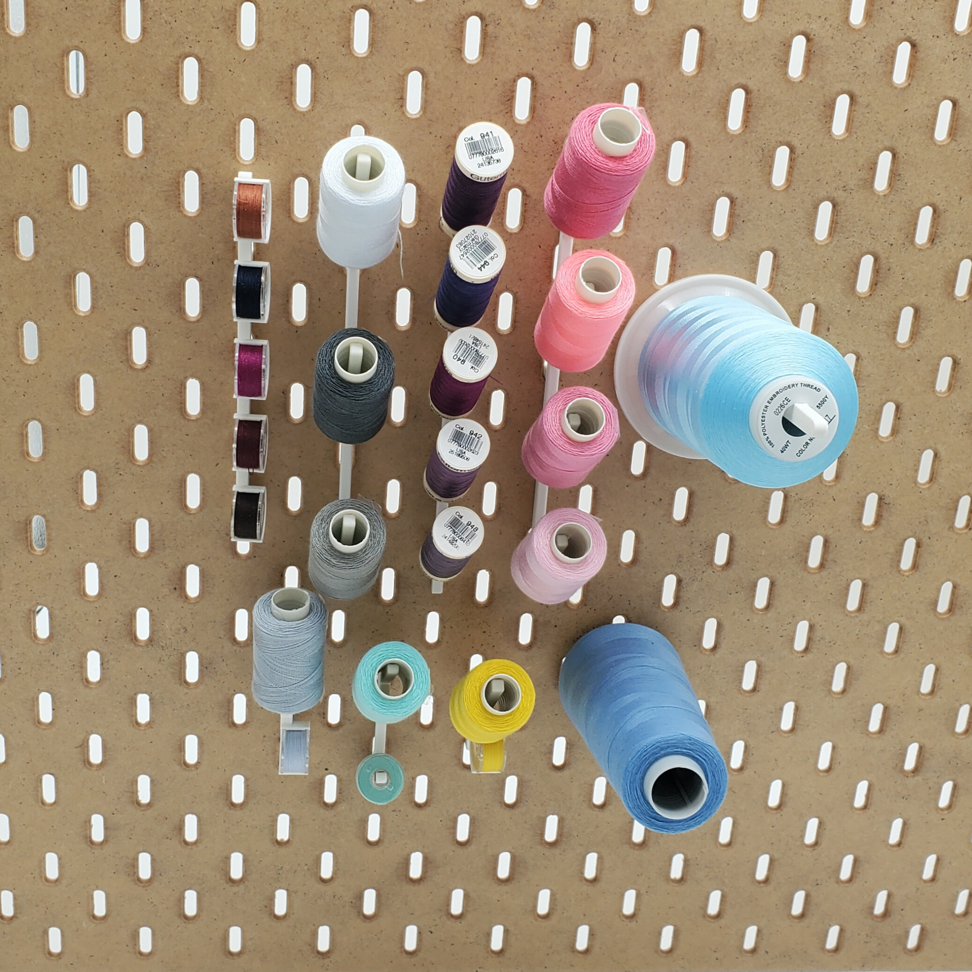 Not sure what storage organization your sewing space needs? This sample pack gives you one of each of our most popular sewing storage accessories! Try your spools and threads and choose what accessories work best for your pegboard sewing space!