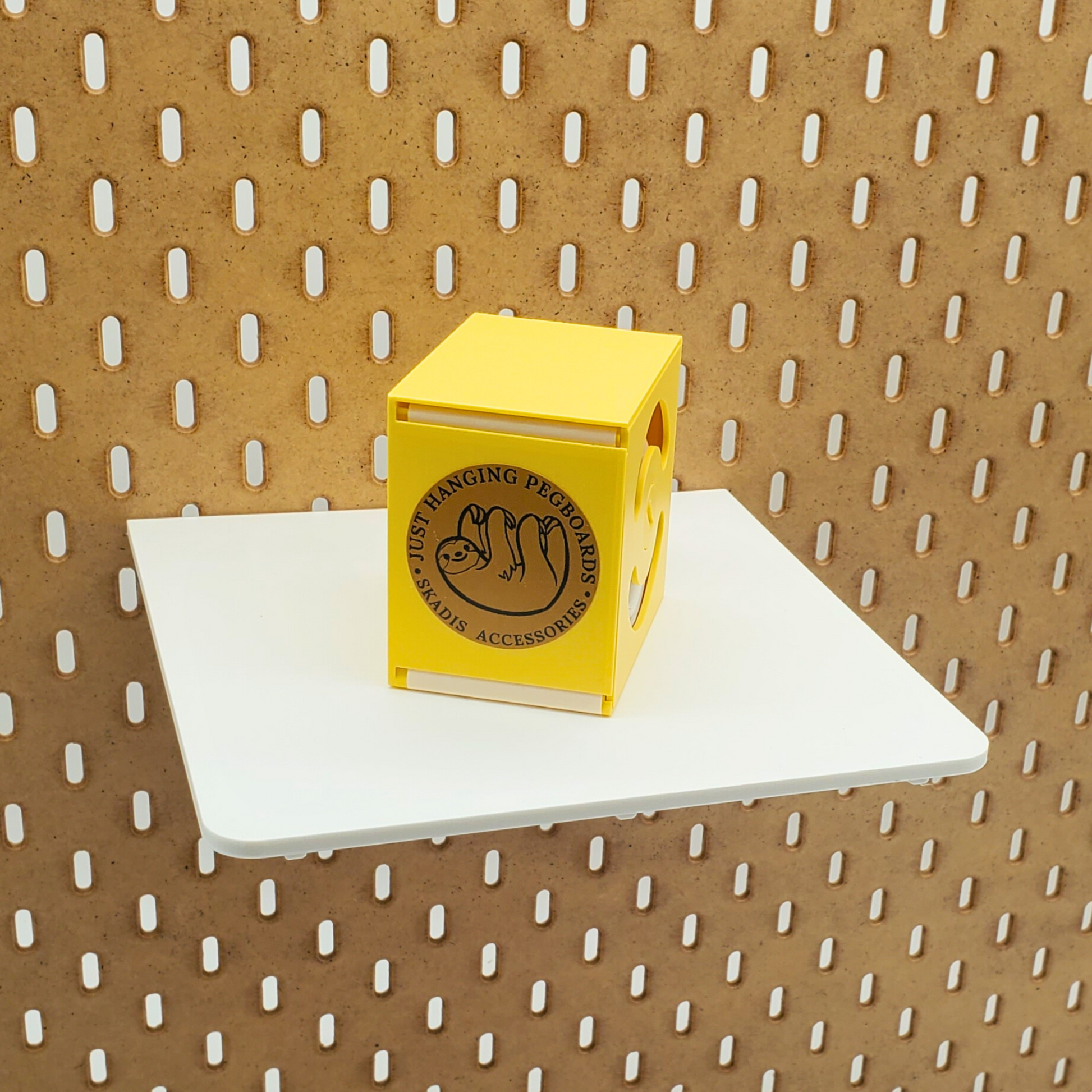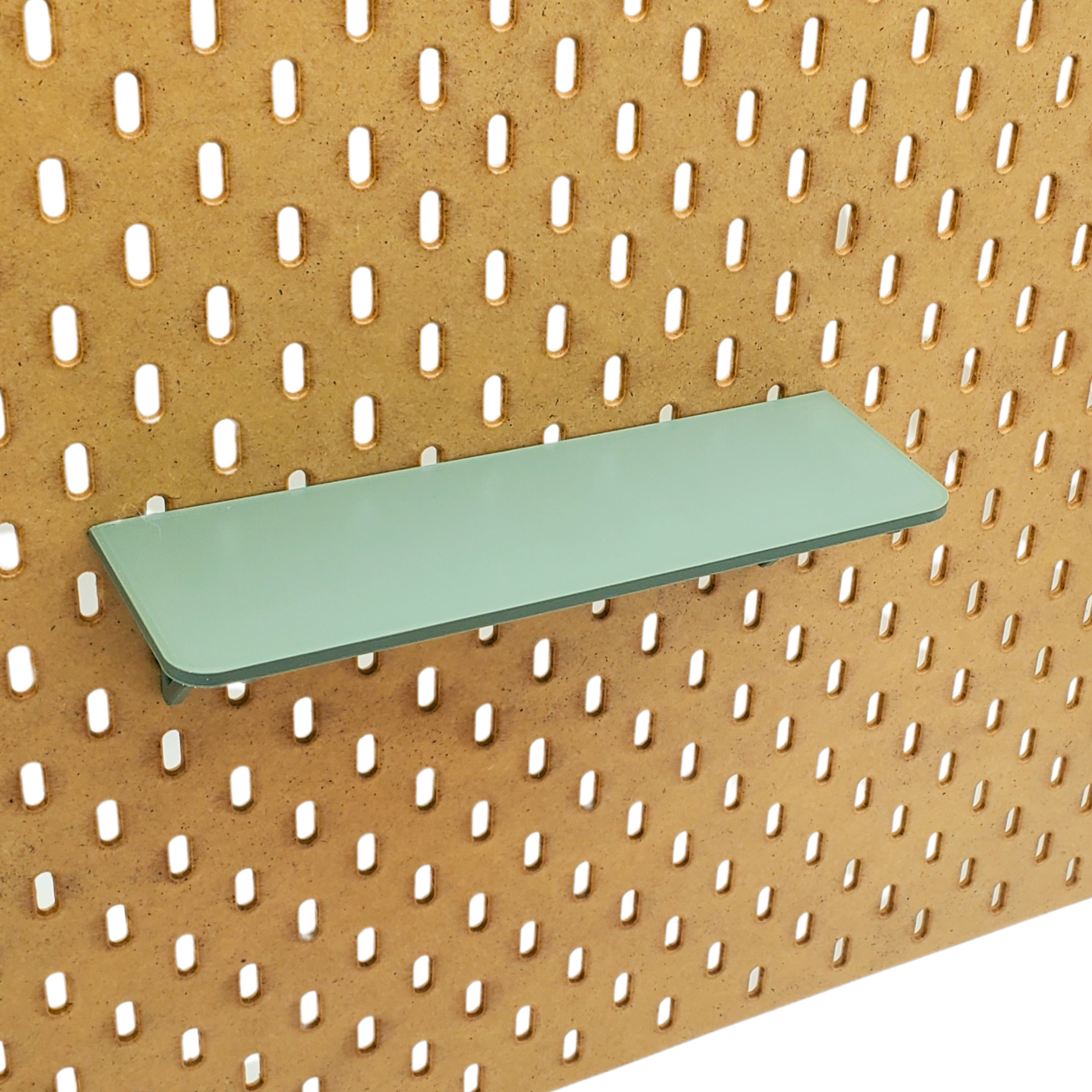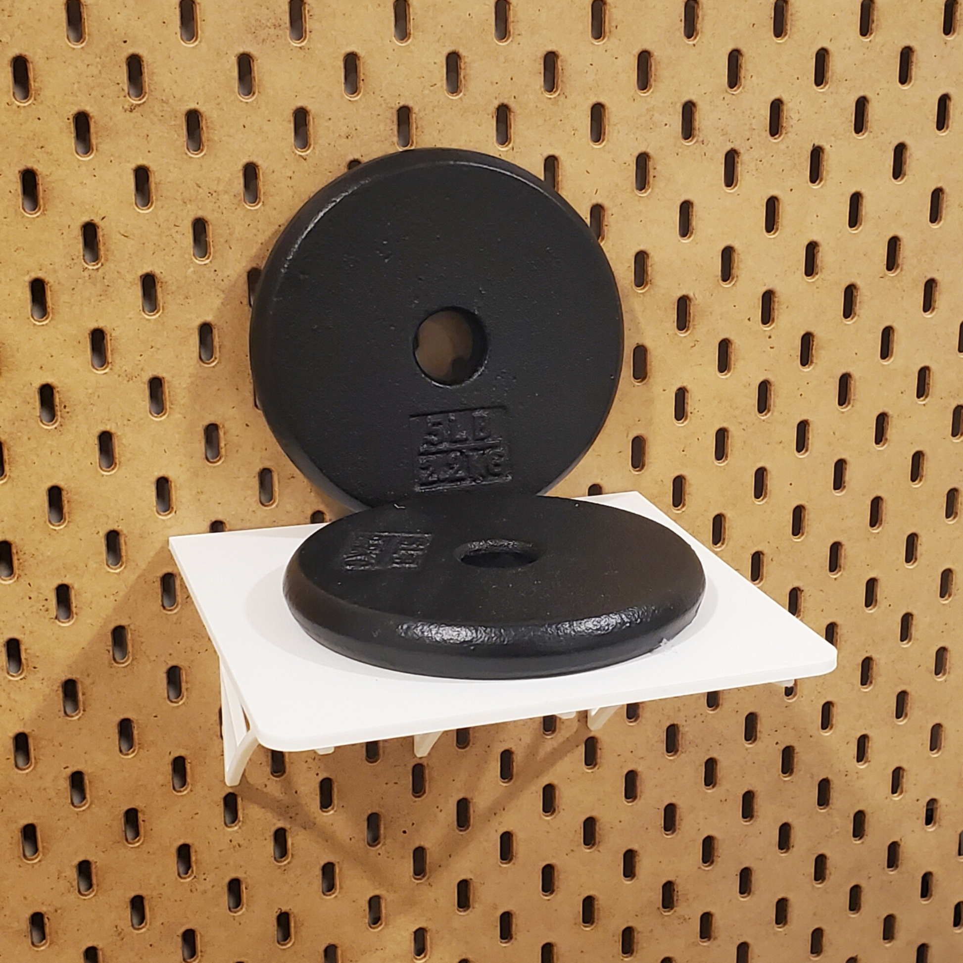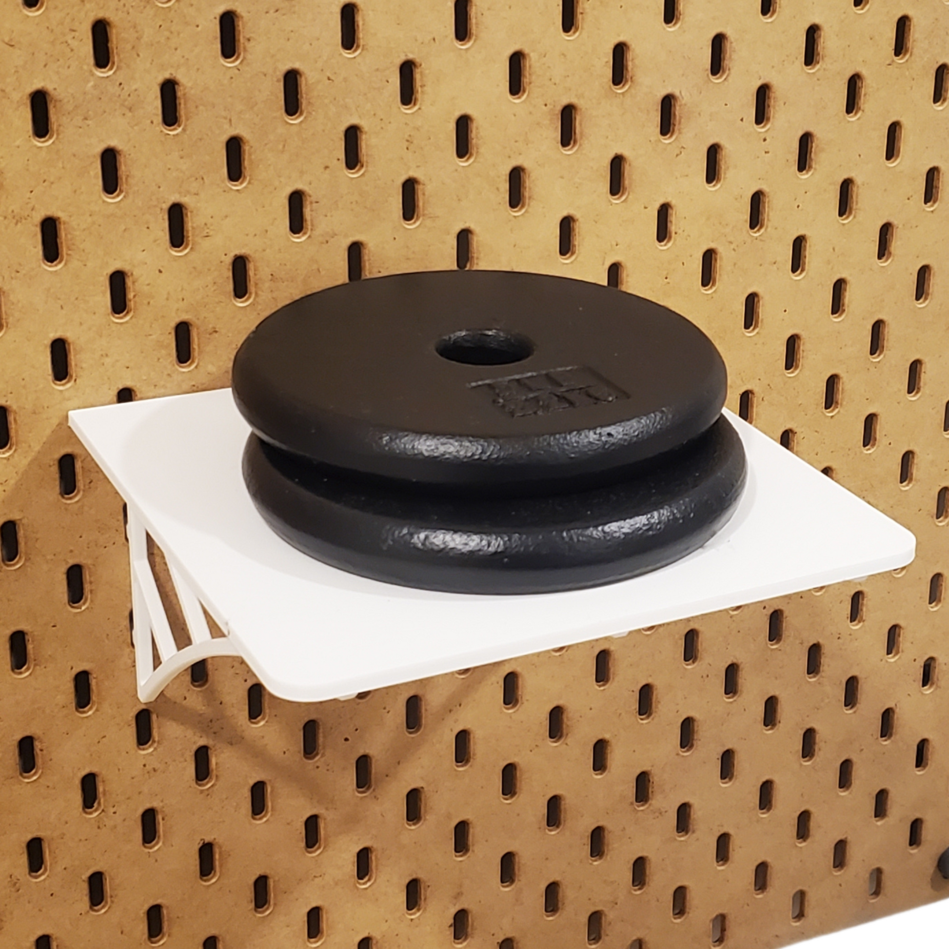 Storage shelves for your IKEA SKADIS board keeps you organized! A flat desk seems to accumulate all of our items, now, we can populate flat surfaces on the wall as well! These shelves are perfect for displaying all your wonderful crafts and tools, and while matching the color of your other SKADIS accessories!