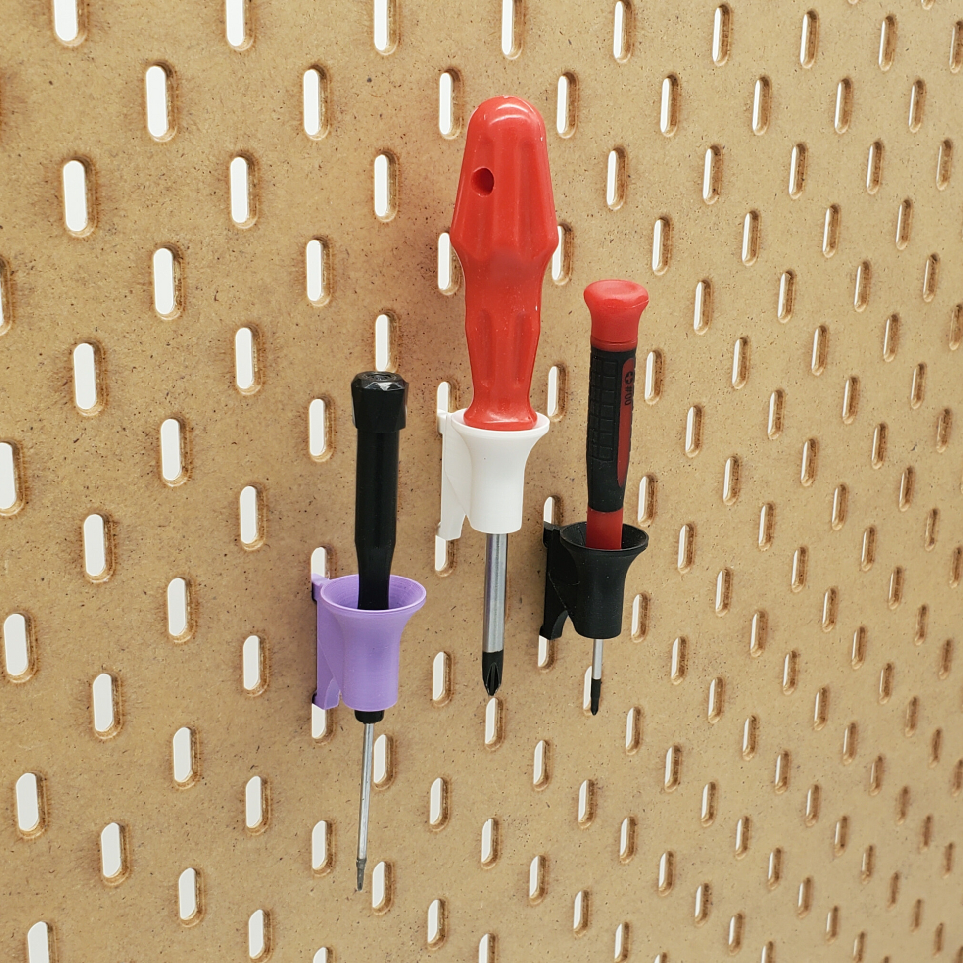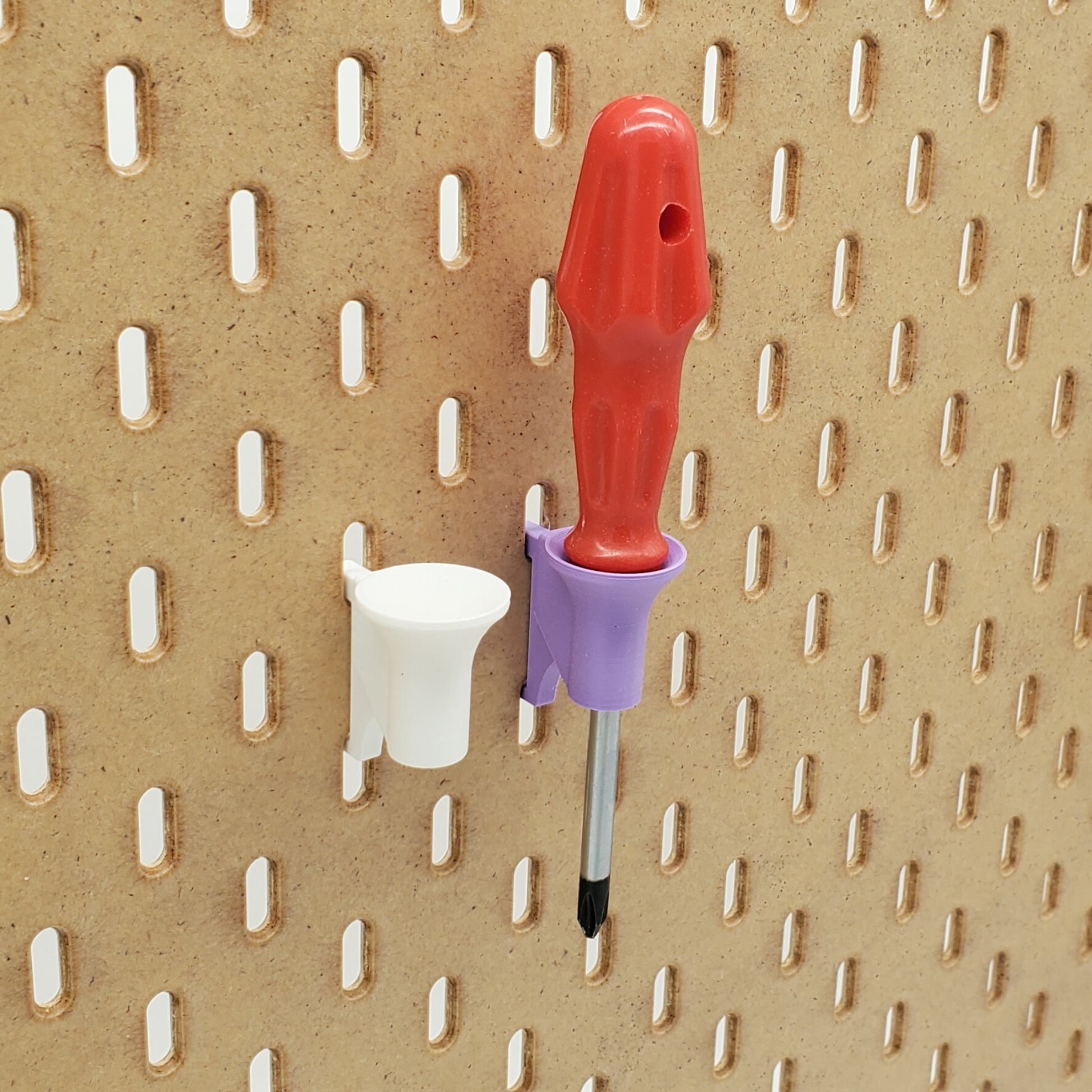 Another 'Just Hanging' Product! Single Screwdriver storage for IKEA SKADIS Pegboards! Elegant funnels hold one screwdriver each. These hooks showcase all those screwdrivers, keeping them visible and handy for when they are needed!