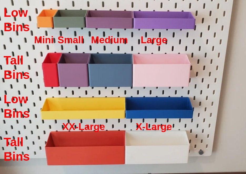 Bin Sizes: Skadis Bin Exterior Dimensions (L x W x H)