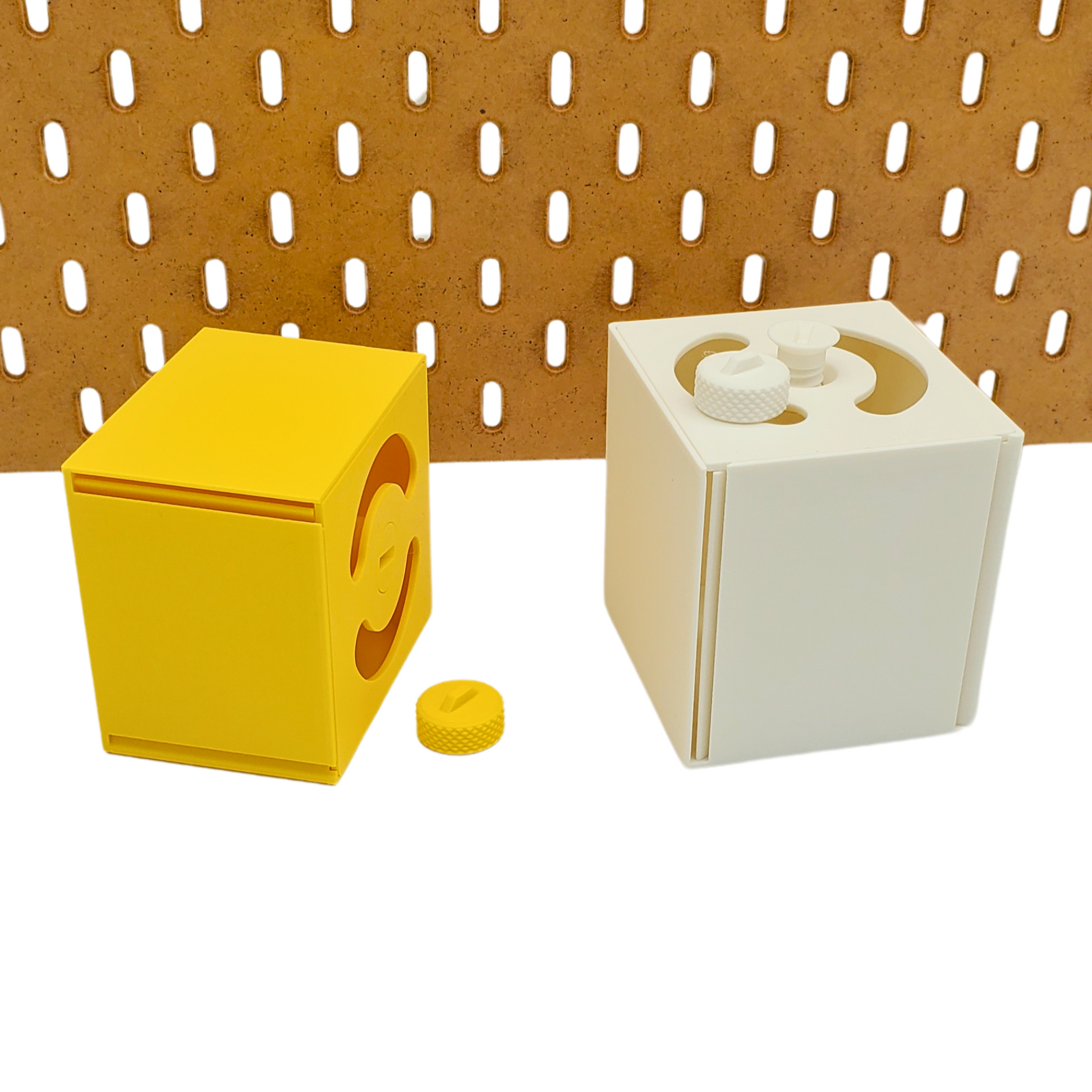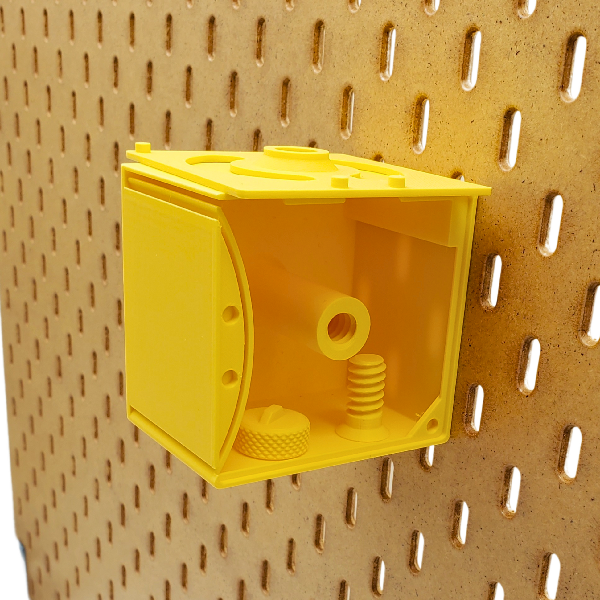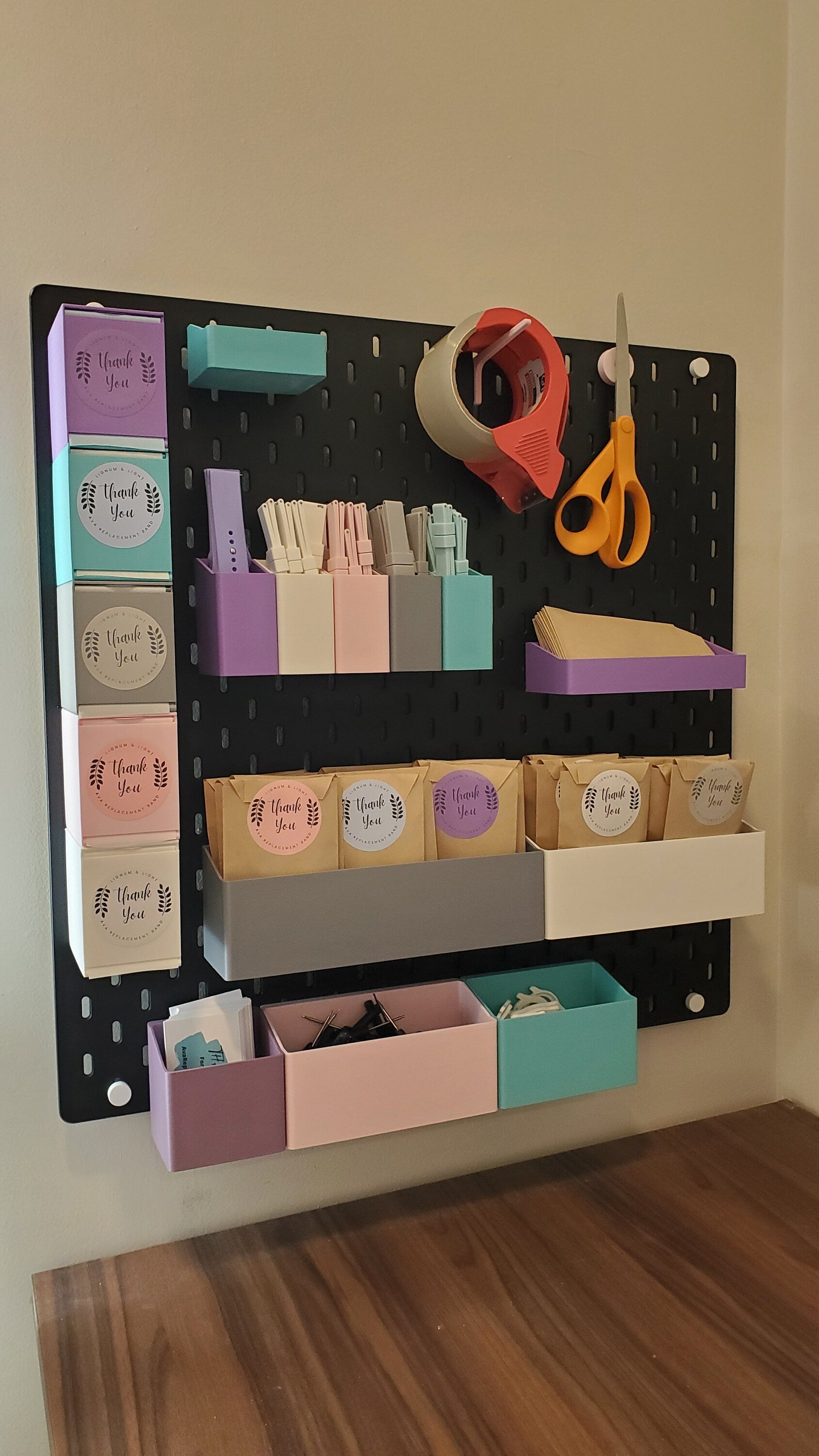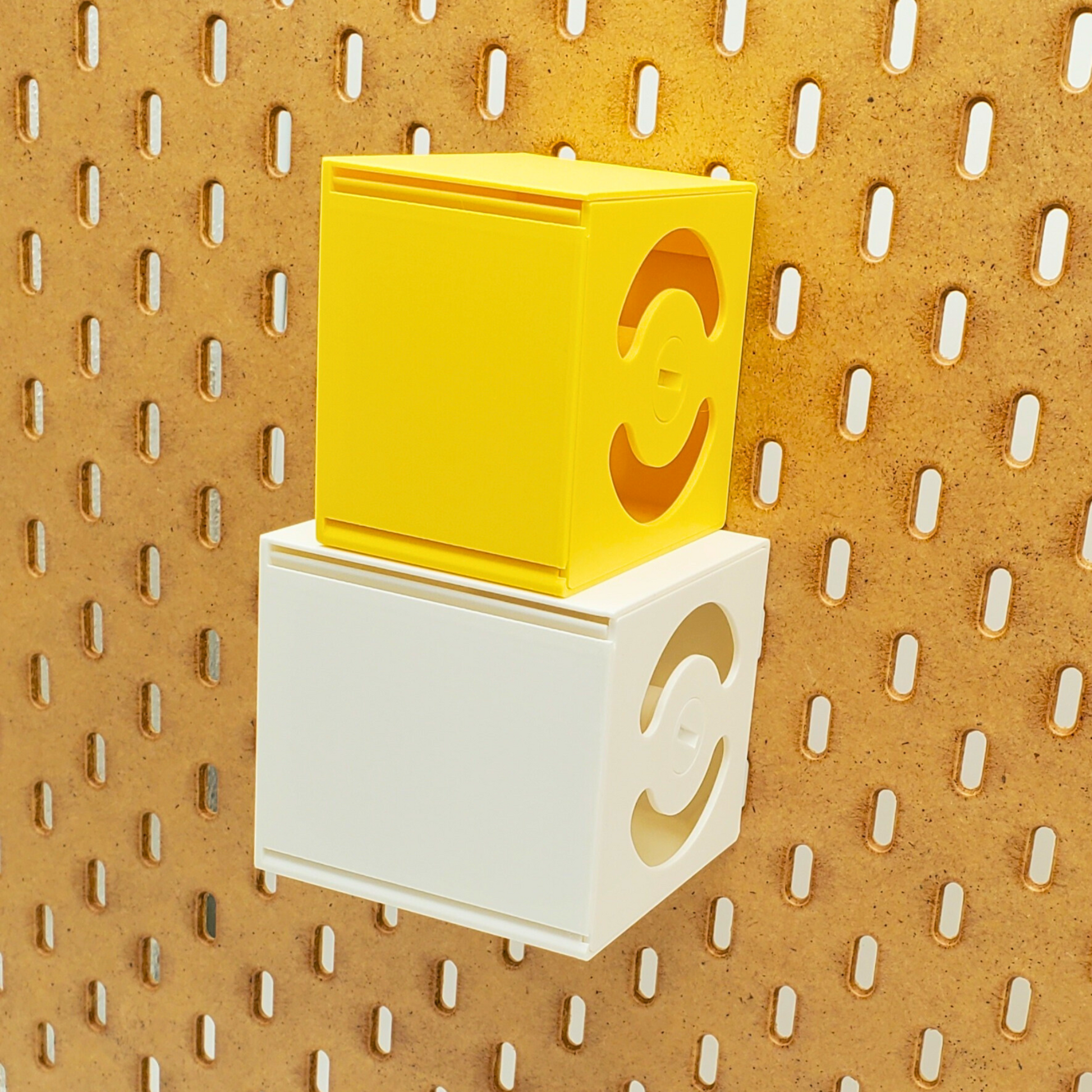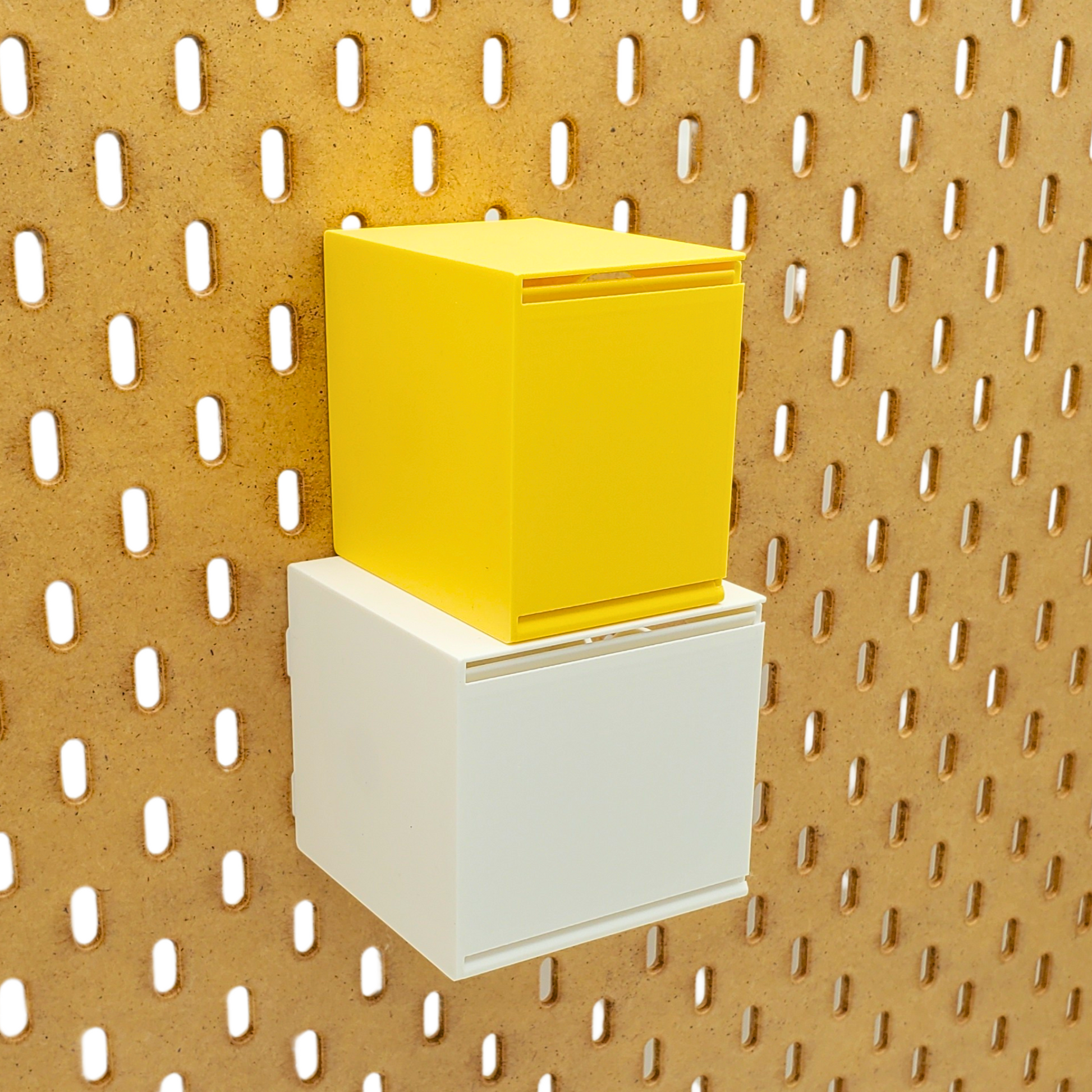 Need a place to store all of your stickers? So did we! This sticker dispenser can be used on a desk, hooked onto your SKADIS, or stashed in a drawer! Available in a variety of colors to match your other SKADIS accessories, this dispenser will help keep the sticker clutter off the desk, and hopefully away from the nosy toddler! With a clean, flat, front, this dispenser provides a spot for a sticker so no one forgets what sticker is in which dispenser!